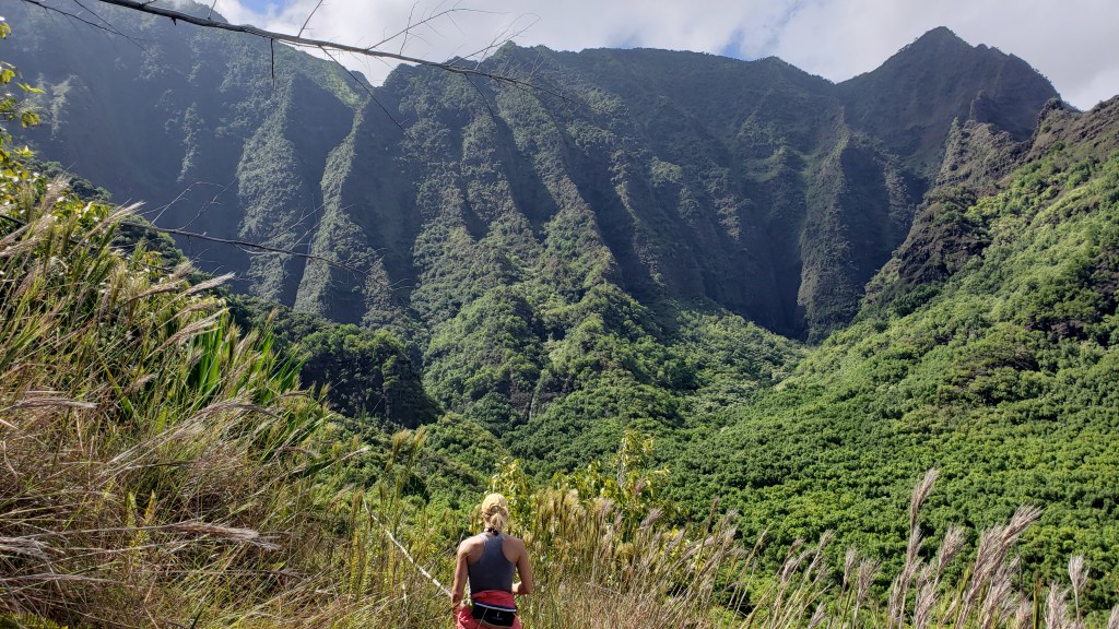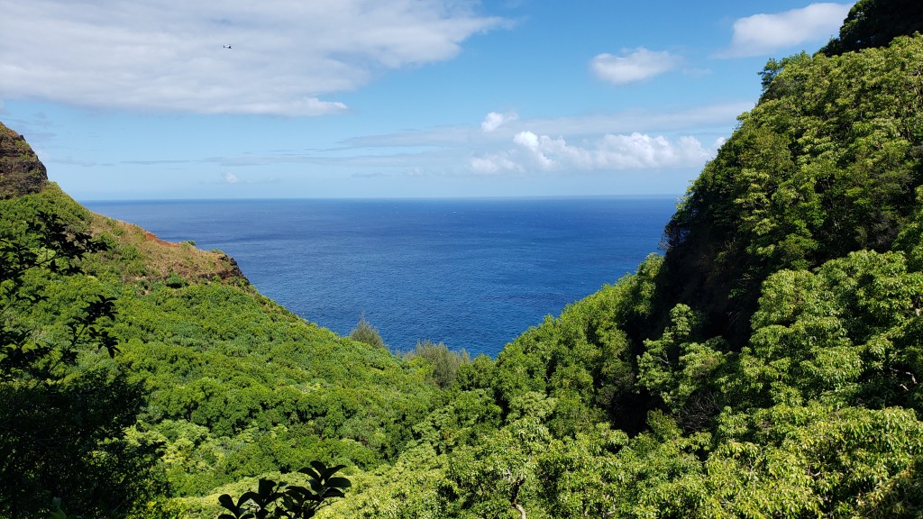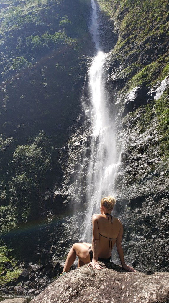 Remember that Hanakapi’ai Falls were 300 feet? Well, Hanakoa Falls is a 1,000 foot waterfall. Now, you can’t see all the way up to the top from the pool in the video, but there are sections along the hike where you can spot the massive waterfall, and helicopter tours are flying in here all the time to show the tourists this incredible spot.