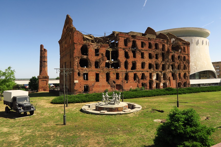There is a building kept as a monument as the only one left standing after the Battle of Stalingrad.